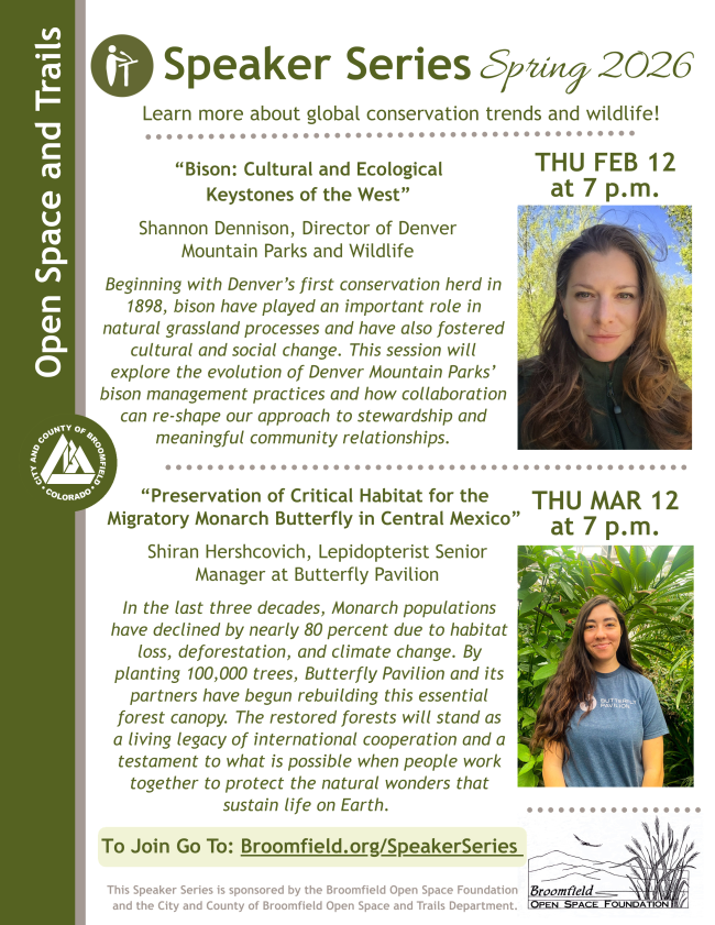 Order your 2026 Broomfield Nature Lover’s Calendar and support open space in Broomfield! Just in time for holiday shopping, the calendar features beautiful winning photographs of Broomfield’s open spaces, trails and wildlife by local residents, Read more…